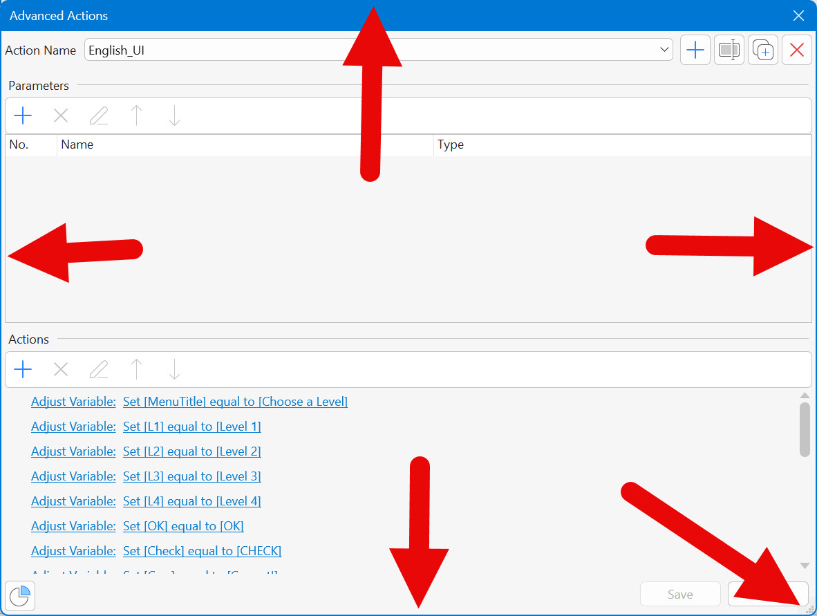 When you open the Advance Actions menu, it doesn’t matter which side of the window you grab, it won’t resize.