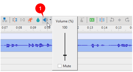 You can select the video track > click the Adjust Volume button (1) in the Timeline pane.