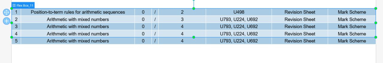 Flex box set up is horizontal direction, wrap, left horizontal alignment, top align rows and auto overflow.