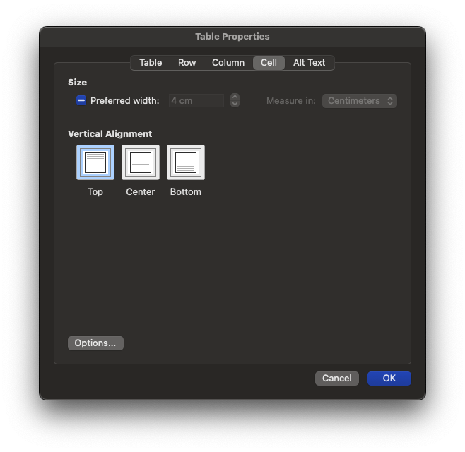 Is there a way to adjust vertical alignment in table cells in ActivePresenter, similar to what we usually see in other office tools (like the setting shown in the attached screenshot)?