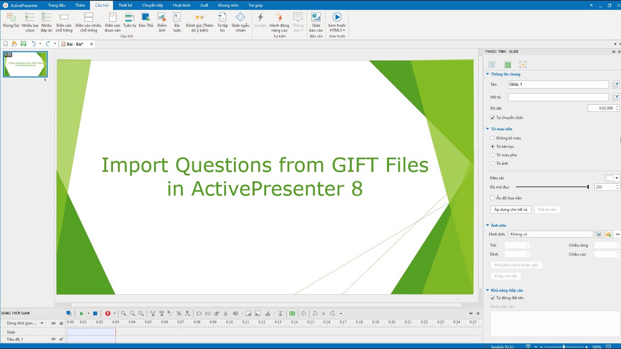 Please watch this video and make sure that you create the GIFT file correctly before importing it into ActivePresenter.
