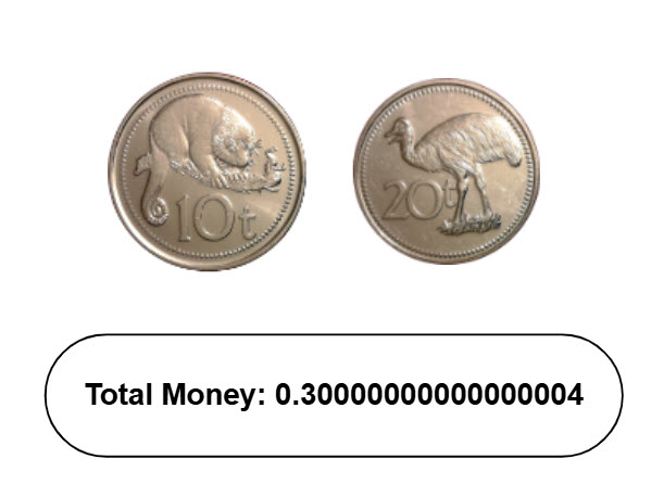 I’m building a money game, where I add 0.1 to the variable “Totalmoney” when I click on a 10 cents coin.