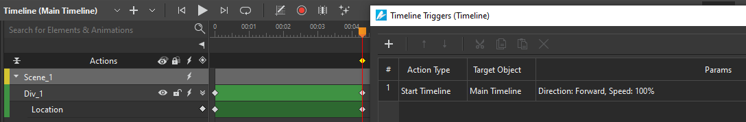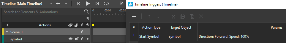 Next, go back to the main editor > insert a Timeline Trigger > add Start Symbol action.