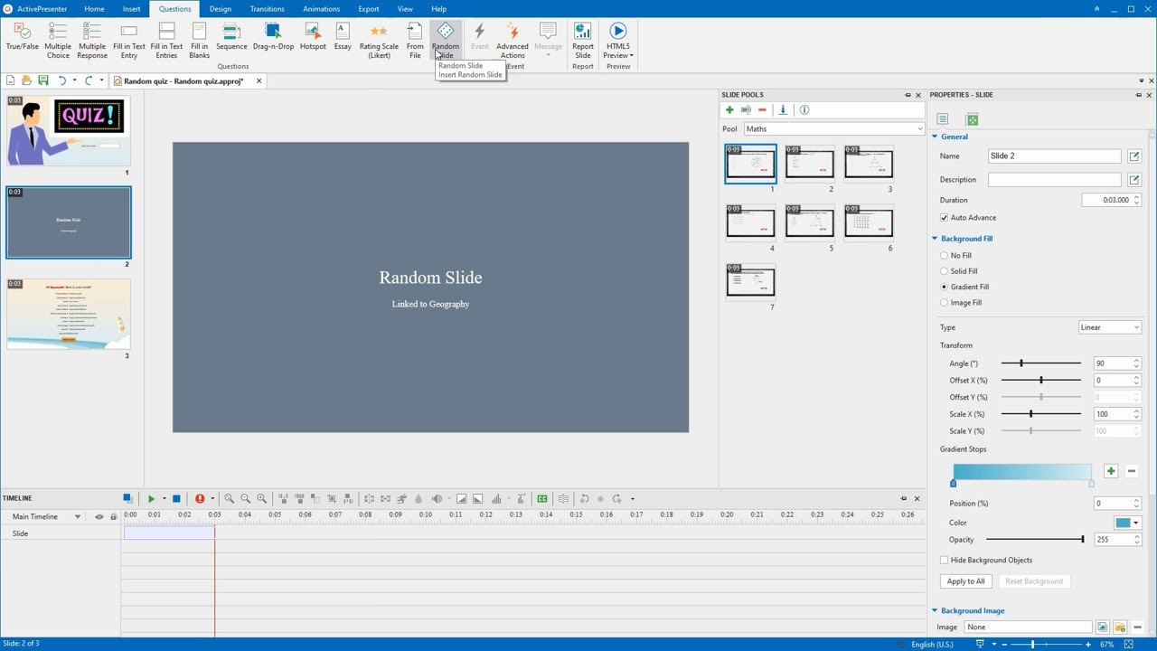 Therefore, in your case, you can refer to the tutorials below to know how to create random quiz in ActivePresenter: