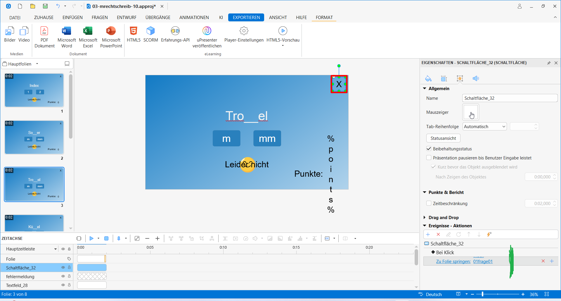 as you can see on the right bottom i have changed the goto activity. i changed it from “01frage01” into “index” which is my first slide in that project. It´s also working and it switches to the “index” slide. But it is still showing the settings from before. Even i save the project and i start it new. Also if i tooltip there, it´s schowing me a selection from the slides i have had there before…..