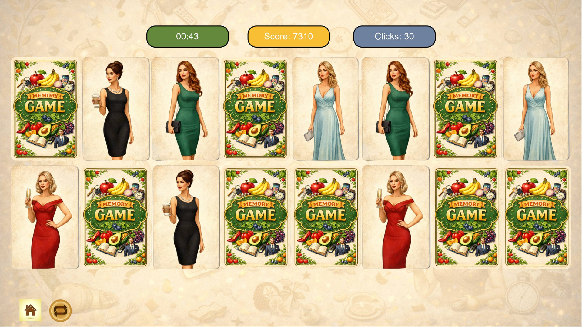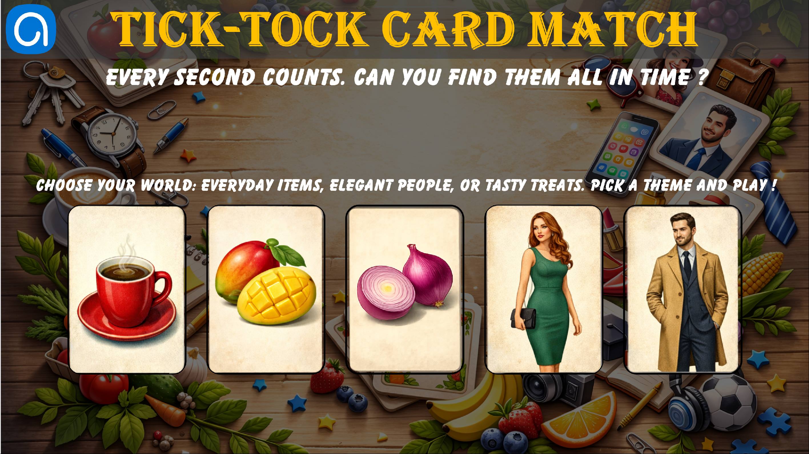 It is a fast-paced memory game where time is your main opponent. In this version, your score drops every second and every click counts! Will you be able to match all the pairs before your points hit zero?